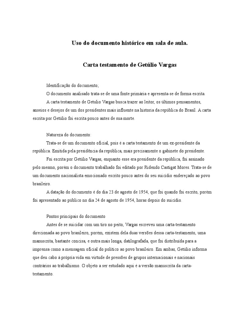 Análise Da Carta De Suicído De Getúlio Vargas Brasil via www.scribd.com